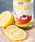 Zesty, golden, and full of sunshine. Our Lemon Olive Oil is made in the traditional agrumato style — fresh California olives cold-pressed together with lemons at the mill. That means the flavor is pure and natural, with no additives or extracts — just the bright pop of real lemon in smooth extra virgin olive oil.